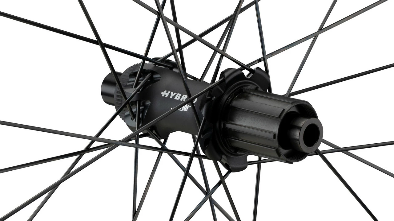 Der HEC 1400 Hybrid Laufradsatz aus Carbon von DT Swiss ist geschaffen für Endurance-Rennräder mit Elektromotor. Die Boost-Nabe steht für besonders viel Stabilität. Dank des SPLINE-Aufbaus und der HYBRID-Technologie hält der Laufradsatz die Belastungen aus, die E-Bikes aufgrund ihres höheren Gewichtes mit sich bringen. So besteht der Freilauf beispielsweise aus Stahl. Mit 47 mm Felgenhöhe stehen die Räder in Sachen Geschwindigkeit und Fahreigenschaften üblichen Straßenlaufrädern in nichts nach.