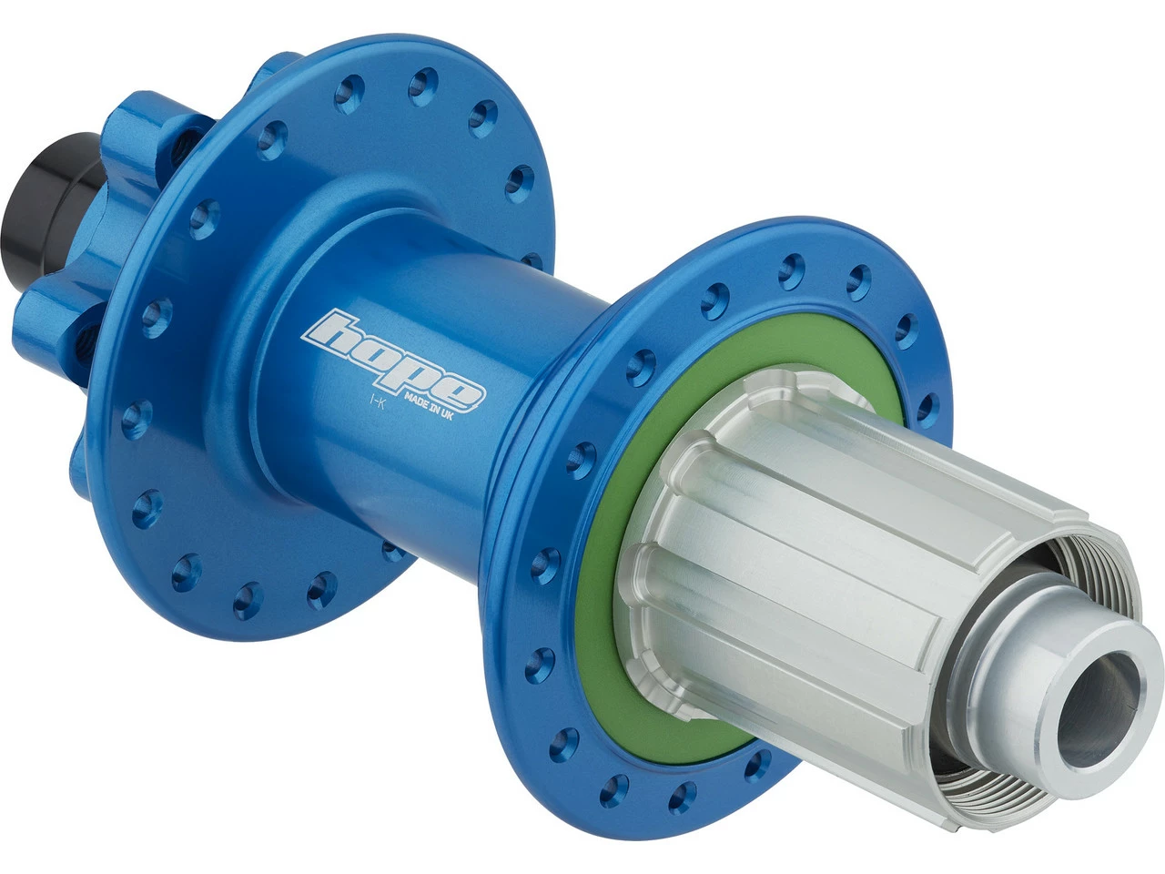 Bei der Pro 4 Nabe hat Hope sich zugunsten der Steifigkeit für einen größeren Flanschdurchmesser am Nabenkörper entschieden. Der Freilauf besitzt eine Verzahnung mit 44 Zähnen. Austauschbare Endkappen sorgen wie gewohnt für eine hohe Kompatibilität. Zudem verfügt die Pro 4 Nabe nun auch über einen Freilaufkörper für Shimano 11-fach Kassetten. Die vielen Farboptionen bieten ultimative Gestaltungsfreiheit.