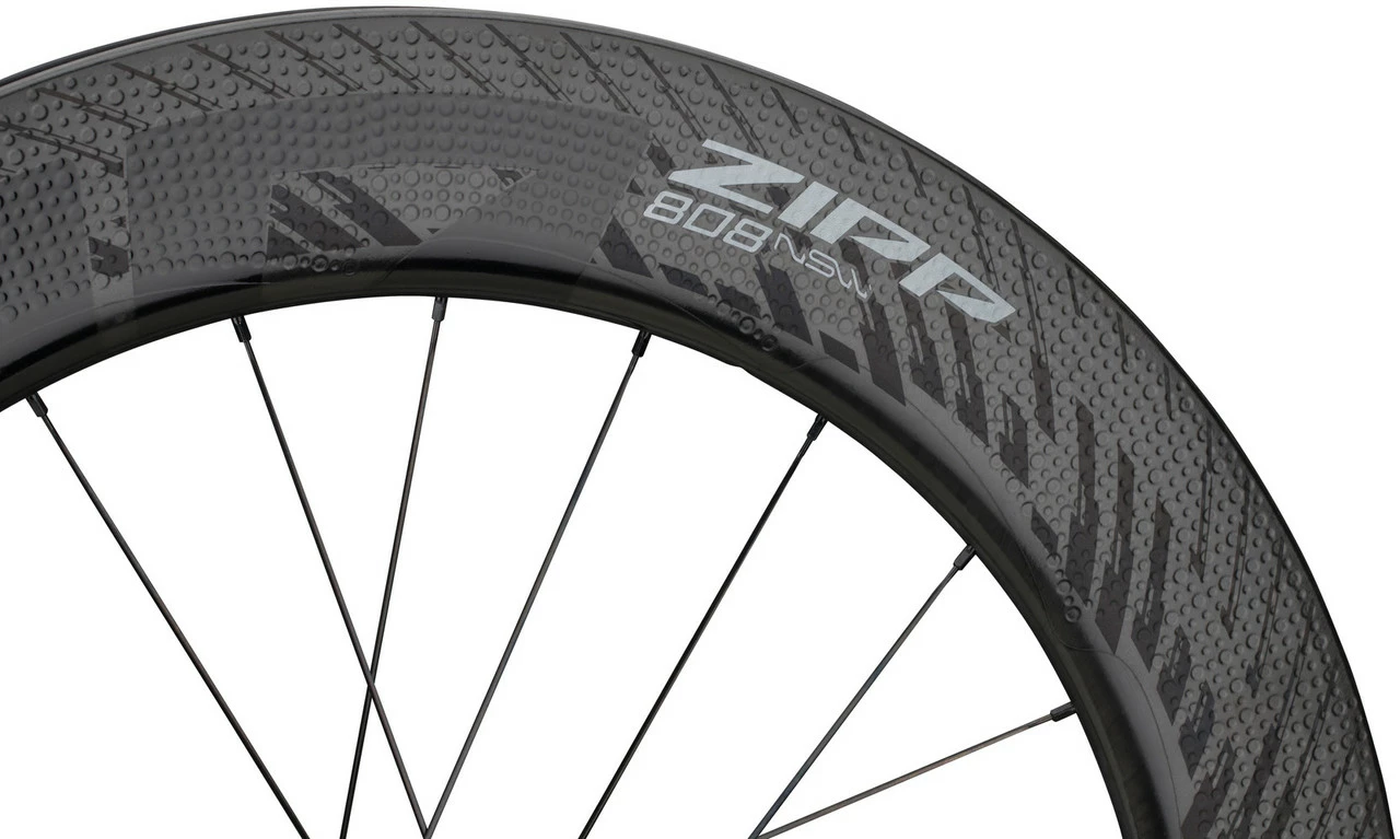 Der Zipp 808 NSW Carbon Tubeless Disc Center Lock Laufradsatz punktet mit ausgeklügelter Aerodynamik und Seitenwindstabilität, basierend auf einer 82 mm hohen Felge mit ABLC SawTooth™ Design, und lässt sich ohne Schlauch fahren, was zu mehr Pannensicherheit, verbessertem Grip und weniger Rollwiderstand führt.